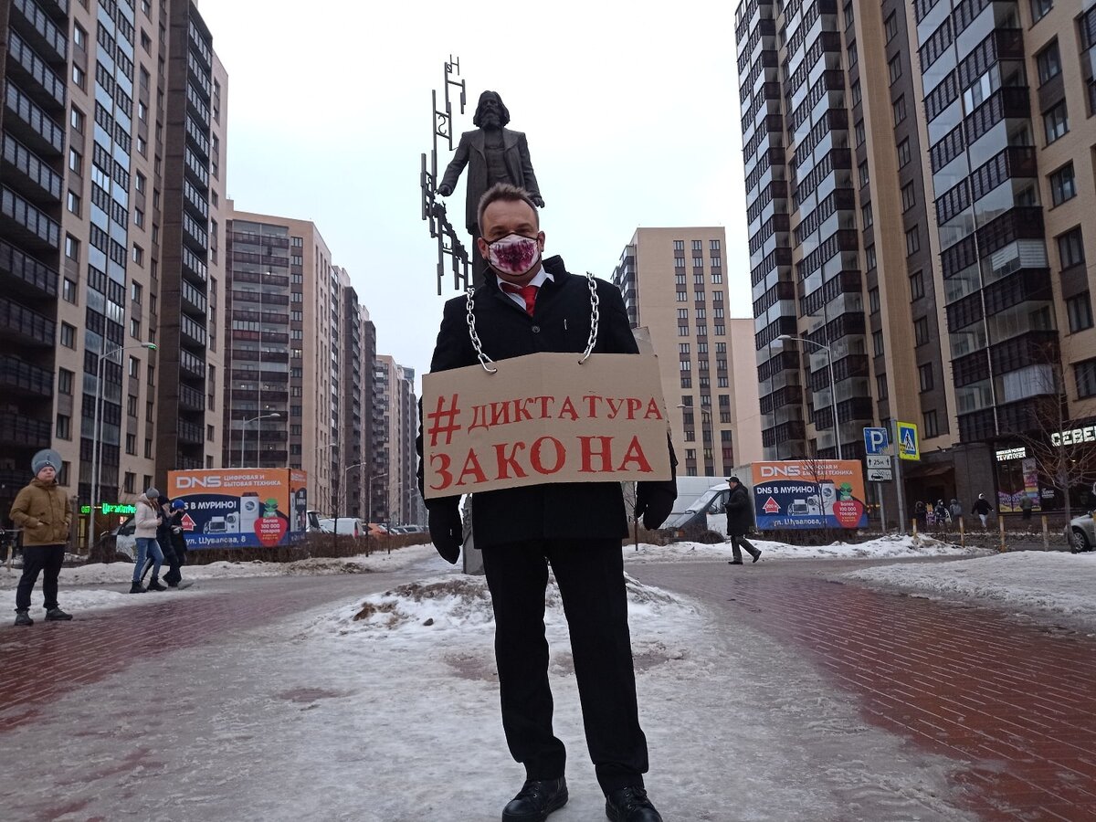 На центральном бульваре города Мурино депутат Законодательного собрания Ленинградской области Сергей Караваев провёл трёхчасовой одиночный пикет.