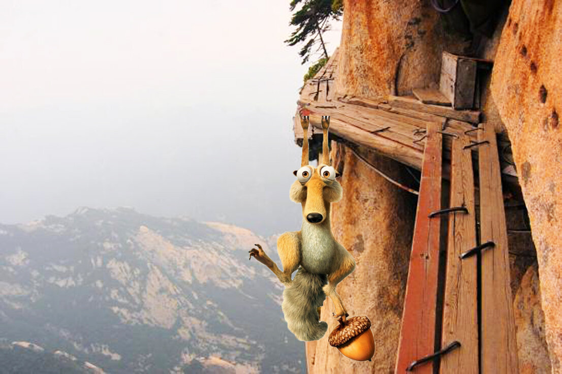 Тропа Хуашань или «Тропа смерти». Находится на горе Хуашань, в провинции Шэньси. Расположена на отвесной скале на высоте около 300м и представляет собой 3–4 доски, скрепленные между собой и проложенные вдоль горы. Знаменитая тропа построена более 700 лет назад. Её длина 100м, ширина 0,3 м. Маршрут заканчивается смотровой площадкой, а далее предстоит обратный путь. К сожалению, другого варианта не предусмотрено. Так что надо рассчитывать свои силы заранее! Но не стоит волноваться, без страховки вас туда никто не пустит.
