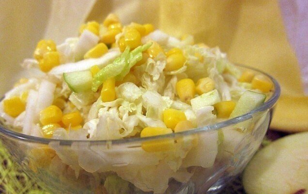 4. Смешать в небольшой миске кукурузу, яблоко и капусту.