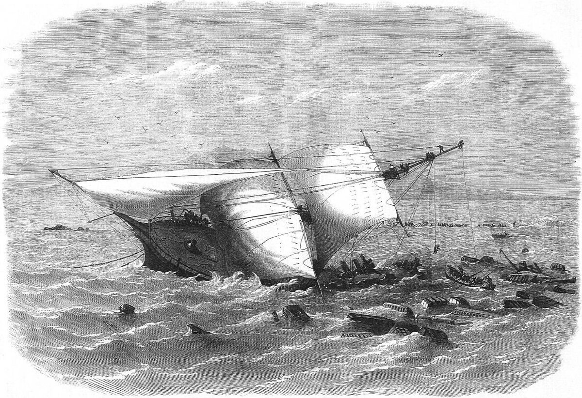 Подобрав из воды тех, кто смог доплыть, он поспешно ретировался. Отлив еще не закончился. Есаул Краснов кликнул добровольцев. 20 всадников направили своих коней в Азовское море. Доплыв до борта брошенного судна, они сняли с мачт британские флаги, документы, какие нашли в капитанской каюте, две 24-фунтовые пушки и одно бомбическое орудие (стрелявшее как миномет навесным огнем) и зажгли судно. Волны до утра выносили на берег мертвые тела английских моряков. Боевые потери донцов – трое раненых осколками снарядов. Свои трофеи казаки отправили в Новочеркасск и в Петербург. В столичном военно-морском музее хранились флаги, снятые с канонерской лодки, взятой на абордаж лихими конниками. А у музея донского казачества в Новочеркасске вплоть до 1920 года стояли медные орудия с британского корабля.