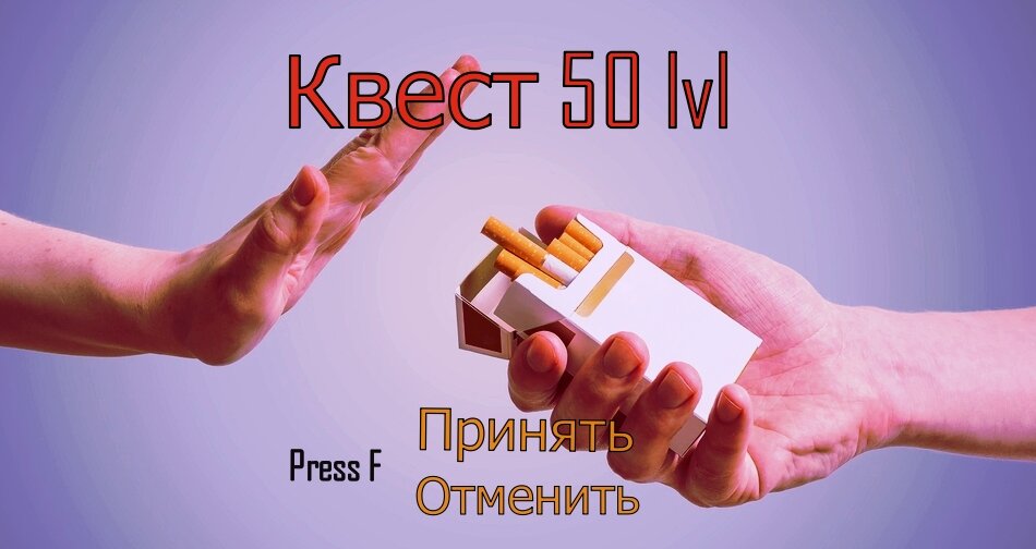 Для справки, выбирая цель выполнять квест, не ставьте глупые мотиваторы - бросить курить ради экономии средств или ради друга, на спор. Такие цели убьют вашу мотивацию и вы снова начнёте курить.