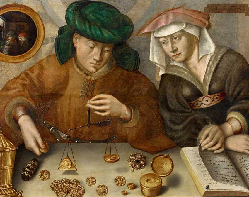 Профессия менялы существовала еще в глубокой древности. Люди с трудом разбирались в большом количестве разных монет и не могли оценить их пробу, т.е. стоимость. Для этого и нужны были специалисты, которые с помощью весов и пробирного камня определяли бы пробу монет и обменивали валюту. В Средневековье менялами и ростовщиками были в основно евреи: христианам запрещалось заниматься денежными операциями.