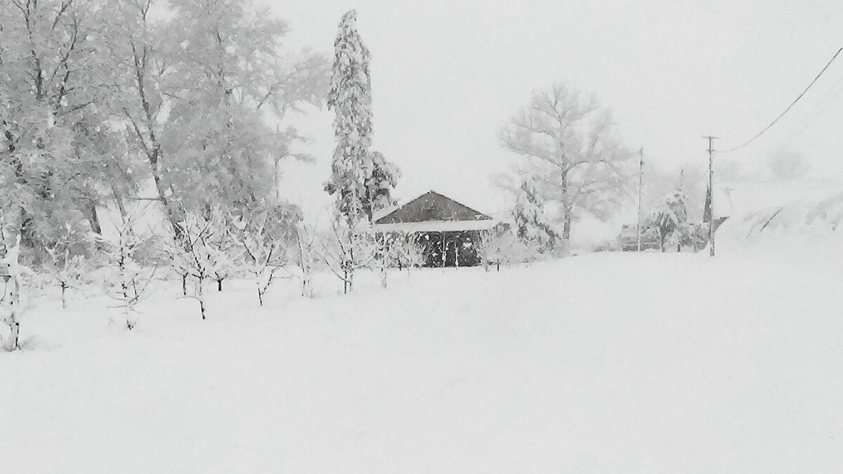 Выйдя из дома в декабрьский снегопад, увидел интересное не по погоде зрелище.
