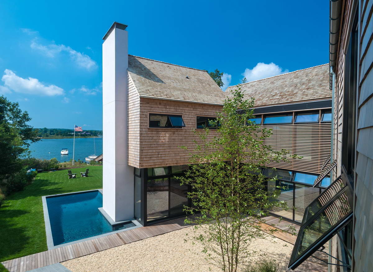 Владельцы этого дома на небольшой бухте в Саг-Харборе — это активная семья из четырех человек. Дом, предназначенный для постоянного проживания, находится на участке с видом на природу, ориентированном на мероприятия на открытом воздухе, доступные в этой местности: парусный спорт, серфинг, катание на лодках, плавание и езда на велосипеде. Задачей архитекторов было спроектировать дом, который легко вмещал бы все эти виды активного отдыха, снаряжение, которое их сопровождает, а также был максимально максимально открыт окружающей природе, когда они дома...