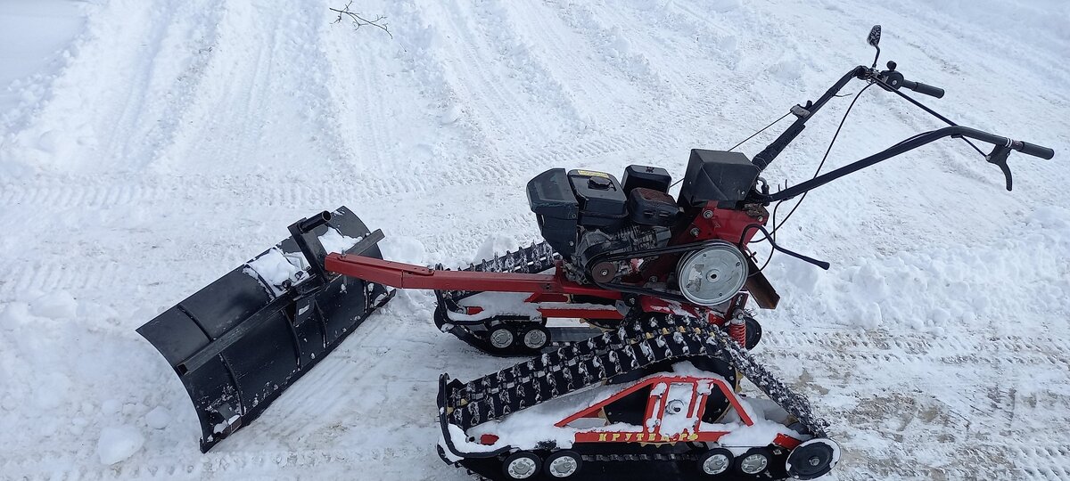 Отвал для мотоблока мой первый помощник в чистке снега на въездной зоне и части дороги с разворотной площадкой. Общая площадь довольно большая, поэтому дорогу и разворотную площадку я стараюсь чистить побыстрее, на 2-й передаче сдвигая снег от центра к краям, также, как это делает грейдер.