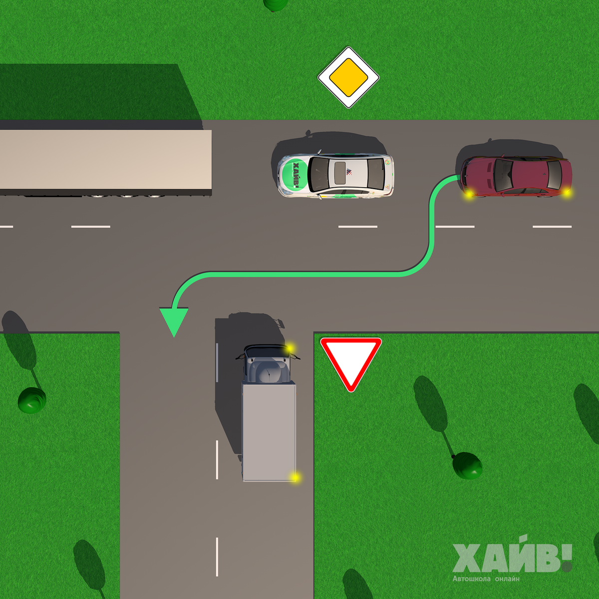 Вправе ли водитель красного автомобиля совершить такой маневр? И должен ли он при этом уступить дорогу грузовику, поворачивающему направо? Или же наоборот, уступать должен грузовик? Пиши свой ответ в комментариях. А наш - ниже. Нарушение при повороте Красный автомобиль не имеет право на движение по указанной траектории, так как не выполнил требования п. 8.5 ПДД. ПДД 8.5. Перед поворотом направо, налево или разворотом водитель обязан заблаговременно занять соответствующее крайнее положение на проезжей части, предназначенной для движения в данном направлении, кроме случаев, когда совершается поворот при въезде на перекресток, где организовано круговое движение. Перед поворотом направо, налево или разворотом водитель обязан заранее занять соответствующее крайнее положение, иначе его займет кто нибудь другой. И создастся аварийная обстановка. Исключение распространяется лишь на случаи въезда на круговые перекрестки. Согласен? Узнайте реальную стоимость обучения в автошколе в Москве — h