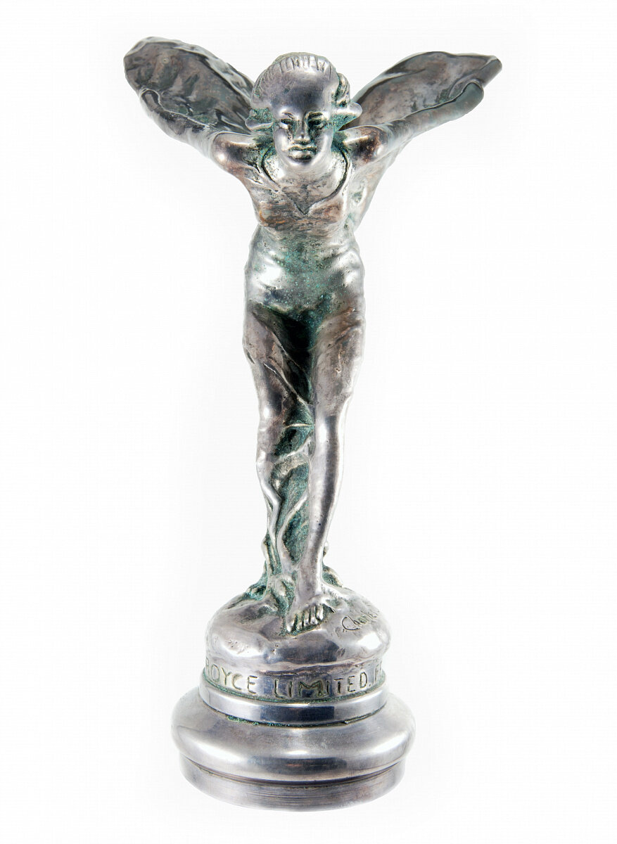 Дизайн позаимствован у бронзовой статуэтки под названием «Шёпот», которая была изготовлена скульптором и иллюстратором Чарльзом Сайксом по заказу автомобильного энтузиаста и одного из первых ценителей Rolls-Royce лорда Монтегю. Фундаментальная связь марки с миром искусства сегодня нашла отражение в собственной арт-программе Rolls-Royce MUSE – одной из ведущих инициатив в мире в области динамичной живописи.
