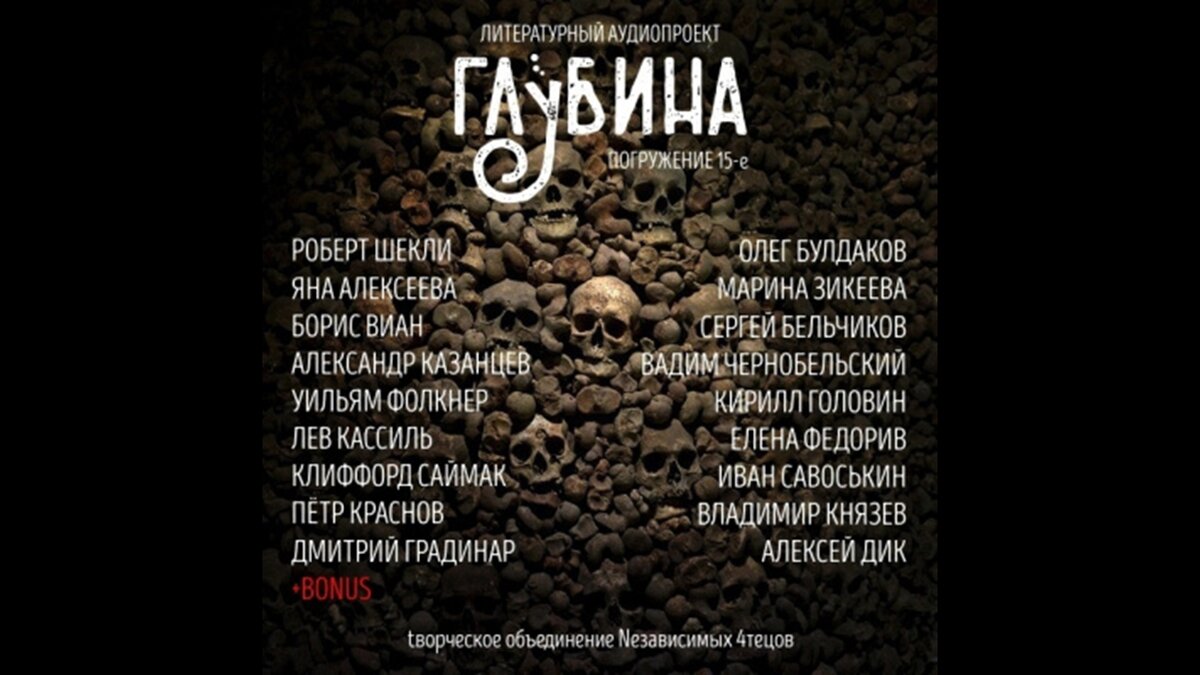 Описание ВОЙНА.Пять простых букв, вмещающих океаны крови и слез, миллионы оборванных жизней и сломанных судеб, невероятную жестокость и циничные предательства. Она была, есть и скорее всего будет всегда, пока существует человек. Одних она ломает и делает предателем, трусом и садистом; других закаляет, превращая в бесстрашных защитников, преданных друзей и прославленных героев. 15-й выпуск «Глубины» посвящён теме войны. Содержание: 1. Роберт Шекли — Добро пожаловать: стандартный кошмар (чит. Олег Булдаков) 2. Яна Алексеева — Целительница (чит. Марина Зикеева )3. Борис Виан — Мурашки (чит. Сергей Бельчиков) 4. Александр Казанцев — Бешеные дивиденды (чит. Вадим Чернобельский) 5. Уильям Фолкнер — Полный поворот кругом (чит. Кирилл Головин) 6. Лев Кассиль — Портрет огнем (чит. Елена Федорив) 7. Клиффорд Саймак — Достойный противник (чит. Иван Савоськин) 8. Пётр Краснов — Восьмидесятый (чит. Владимир Князев) 9. Дмитрий Градинар — Пехотные игрища (чит. Алексей Дик) BONUS: Генри Слизар — После войны ( чит. Олег Булдаков, Иван Савоськин, Кирилл Головин, Алексей Дик)
