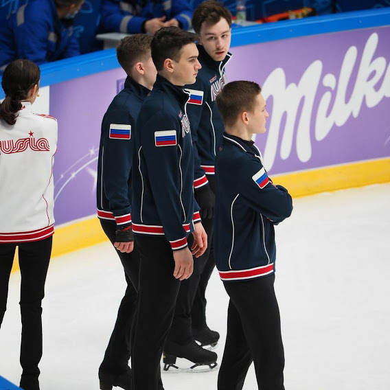 Теперь этот прыжок должен будет повторить кто-то из команды мужчин. Капитаном их команды в этом раунде выступает Евгения Медведева.