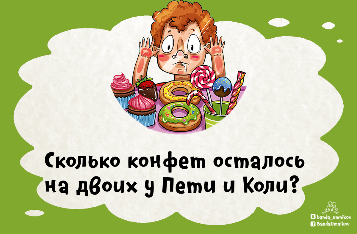 Задачка 1. Пете и Коле купили по коробке конфет. В каждой коробке находится 12 конфет. Петя из своей коробки съел несколько конфет, а Коля из своей коробки съел столько конфет, сколько осталось в коробке у Пети. Сколько конфет осталось на двоих у Пети и Коли?