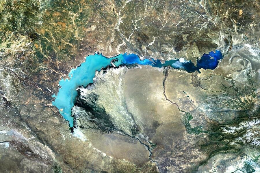 Озеро Балхаш, расположенное на востоке Казахстана — уникальное природное образование. Оно очень большое по площади, но в тоже время очень мелкое. Удивительная особенность озера: вода в его восточной половине — соленая, а в западной — достаточно пресная, поэтому даже виды рыб, обитающие в разных частях озера, разные.