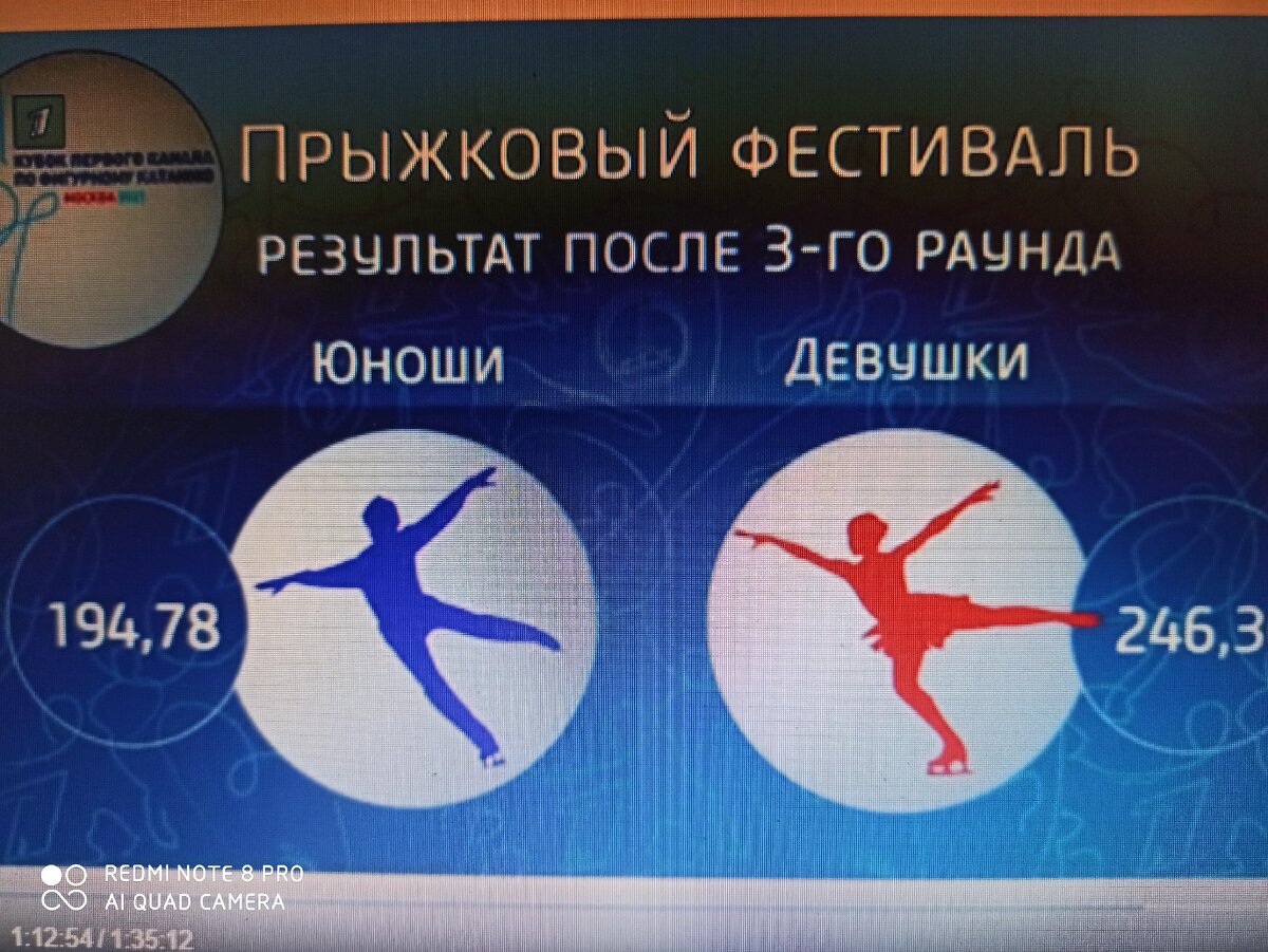 В итоге выигрывают прыжковый турнир девушки со счетом 246,30 балла, против 194,78 у юношей. А. Ягудин объявил, что победители первого дня соревнования получат 1 млн. р.