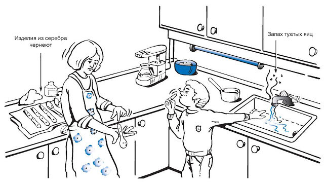 - Первый, и о нем мы уже сказали выше, запах протухших яиц.
