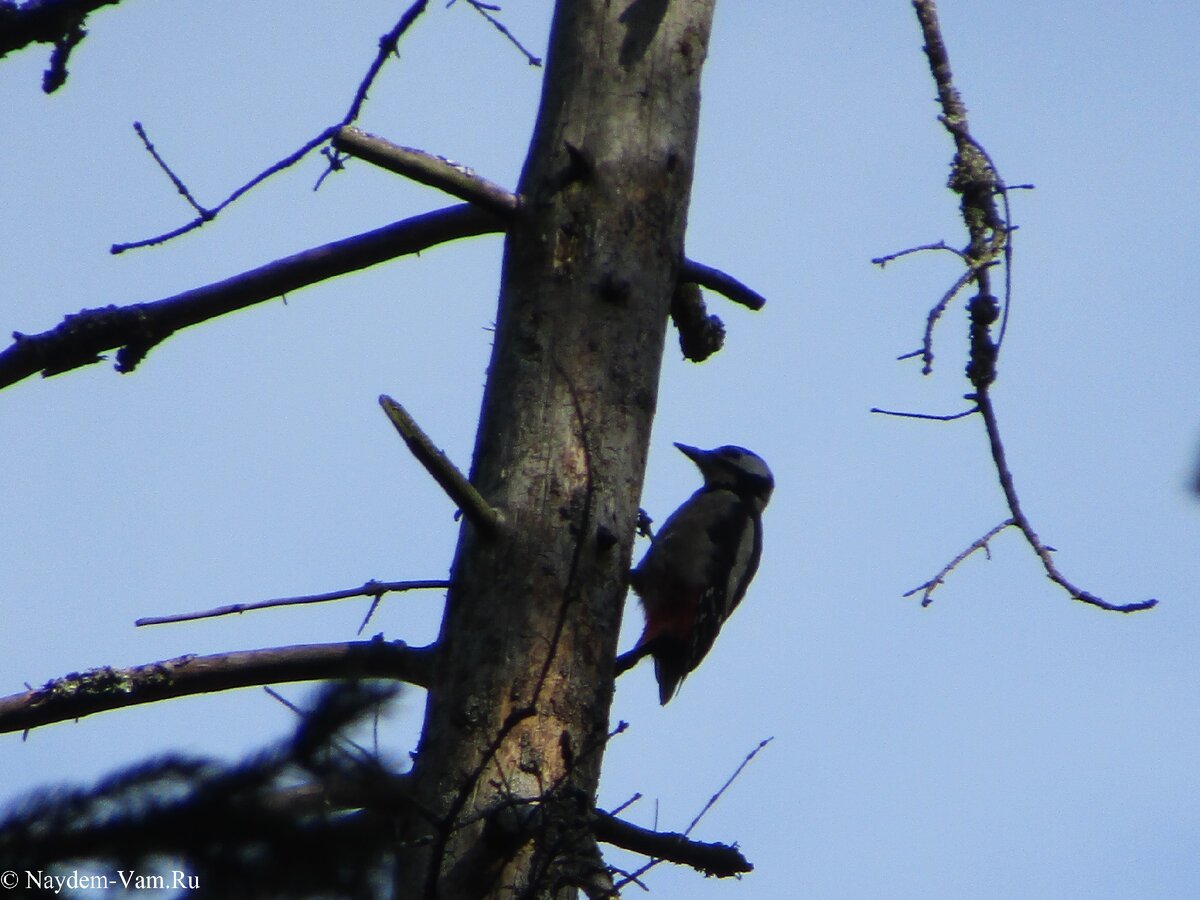 Дятел на сосне сидит.