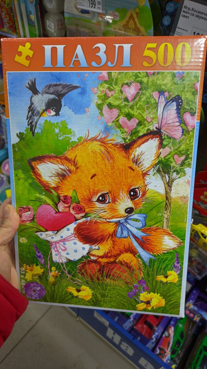 И вот в пятницу проходя мимо детского отдела, меня привлекла яркая коробочка с маленьким лисёнком. Это лежали пазлы. В детстве я их любил собирать, но потом вырос и увлечение забылось.