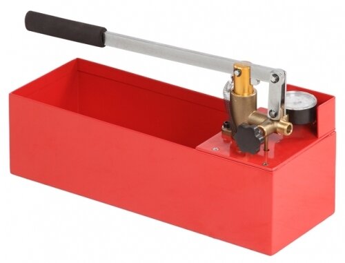 - Опрессовщик труб ручной – используется на частях трубопровода, не имеющих источников электропитания или водоснабжения. Наиболее часто применяются для непостоянных работ. В процессе использования ручных типов опрессовщиков, давление которое они могут создавать, ограничивается уровнем в 500 атмосфер. Кроме традиционно используемой воды, в качестве рабочей среды можно заливать гидравлическое масло и антифриз. В продаже так же есть ручные опрессовщики достаточно компактных размеров, основным назначением которых является быстрое определение уровня давления в системе и проверке герметичности узлов и элементов водопроводных, сантехнических систем, а кроме этого и в охладительных и масляных установках.