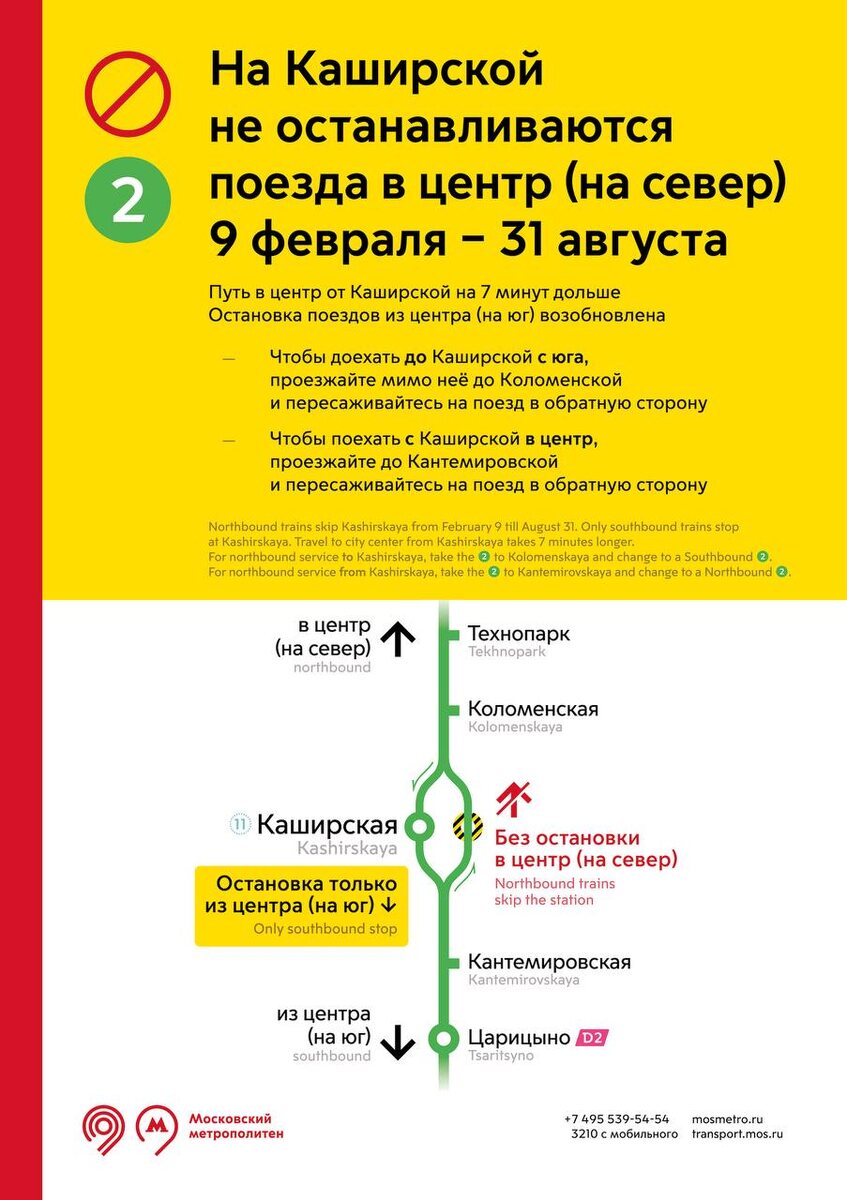 Мы продолжаем реконструкцию «Каширской» Замоскворецкой линии. С 9 февраля по 31 августа на ней не будут останавливаться поезда, следующие в центр.