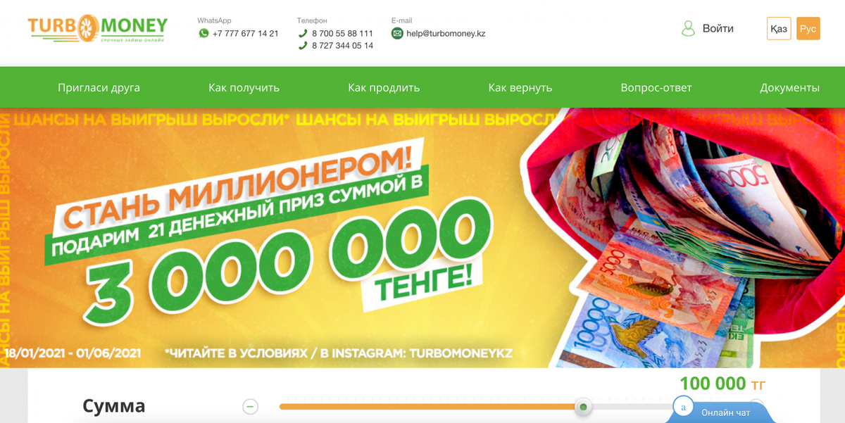 Контакты Тurbomoney в Казахстане