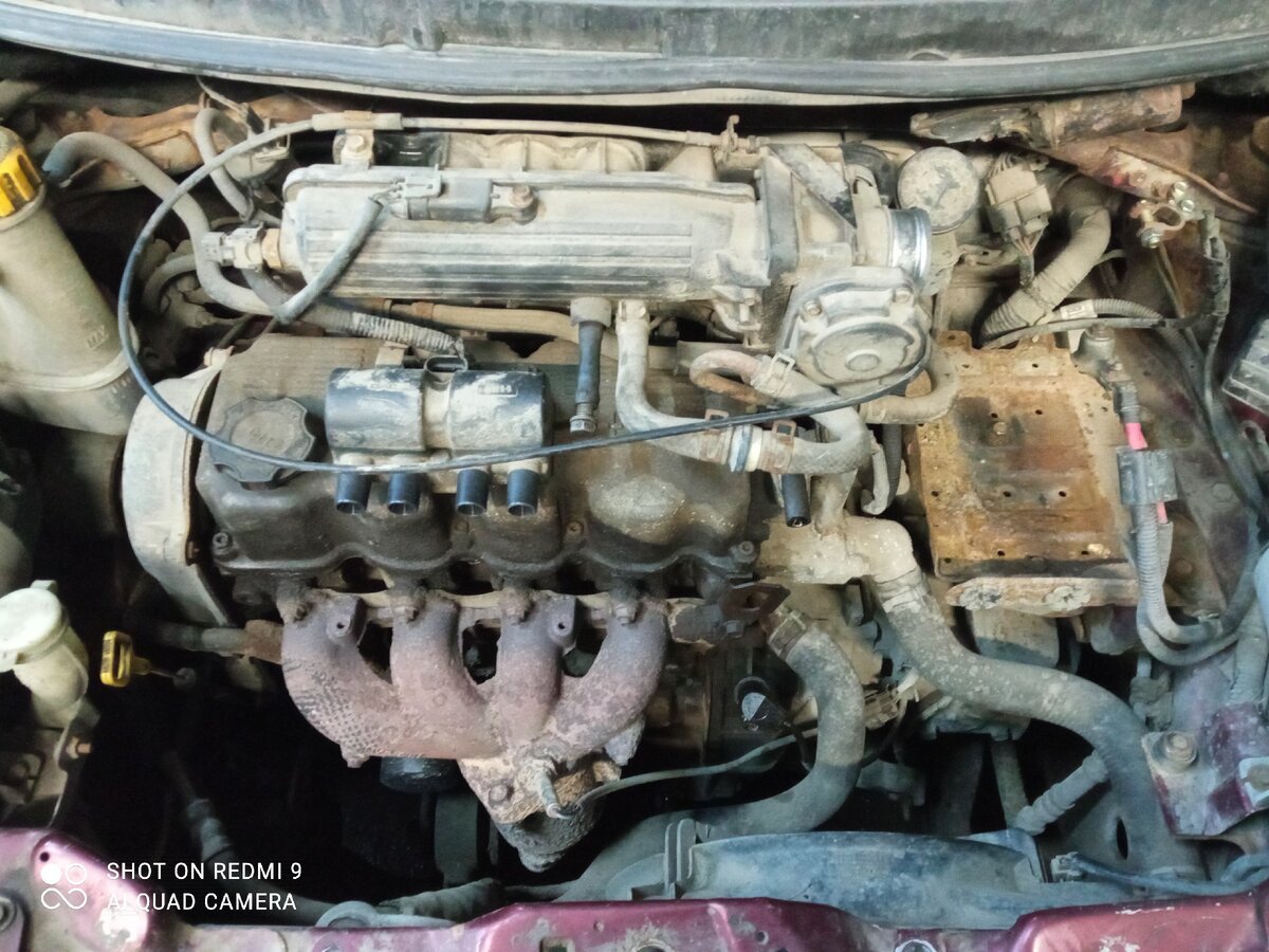 Обязательно делаем фото, чтобы не забыть ничего. Снимаем аккумулятор, отсоединяем все провода от головки, всё что присоединяется к ней, откручиваем выпускной коллектор, снимаем крышку грм, снимаем ремень, снимаем шестерню распредвала. Отсоединяем все патрубки охлаждающей жидкости, изначально слив её. Откручиваем крышку