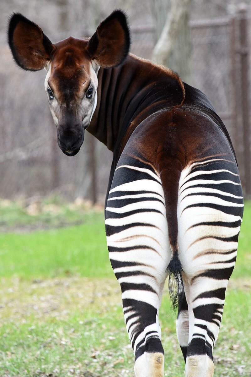 Их часто называют лесным жирафом. Его голова похожа на голову жирафа, его тело больше схоже с телом лошади, а ноги покрыты полосами как у зебр. У самцов также есть два небольших псевдорога на голове, покрытых кожей. И все это - ОКАПИ!