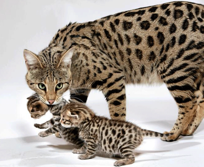 4. Сафари Это еще одна дорогая кошка, которая своим окрасом напоминает диких сородичей. Кошки сафари – это гибрид дикого кота жоффруа из Южной Америки и обычной домашней кошечки, от которой потомки унаследовали нежность и доброжелательность. Мир узнал о новых мурлыках еще в 70-х годах ХХ века. Сафари – одна из редчайших пород, сочетающая в себе крупные размеры, значительную массу тела (до 11 кг) и необычную пятнистую раскраску по типу жоффура. Сильное мускулистое тело необычных питомцев гармонирует с длинными и такими же крепкими ногами. А упругая с густым подшерстком шерсть обладает водооталкивающими свойствами. При желании купить породистого котенка в питомнике можно за 4000 – 8000 долларов.