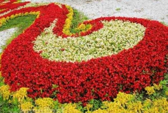 - Во-первых, требуется нарисовать схему будущей посадки. Цветы в рабатке можно располагать в виде затейливых рисунков либо ровными рядами, или всё внимание сосредоточить на сочетании оттенков цветов и листьев.