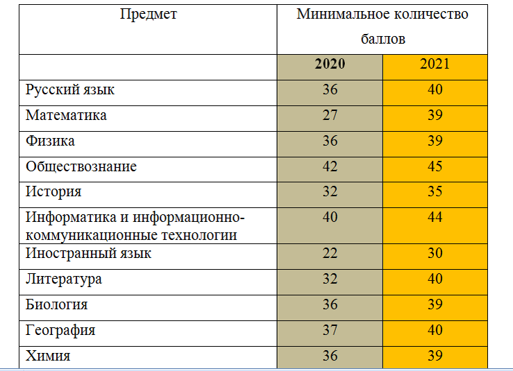 Вот вся таблица с изменениями проходных баллов: