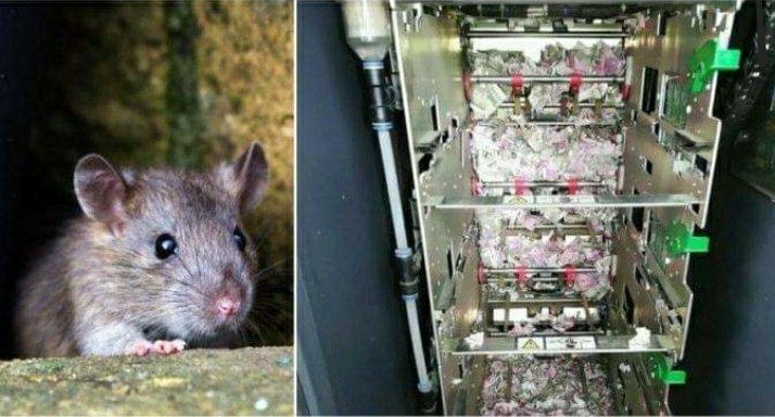 В индийском городе Тинсукиа крыса зашла в банкомат и съела большое количество банкнот. Когда рабочие открыли дверцу банкомата, они обнаружили клочки бумаги и дохлую крысу. «С банкоматом возникли технические проблемы, он не работал. Поэтому наши сотрудники пошли его ремонтировать. Однако, открыв дверь, они были изумлены », - сообщил СМИ управляющий главного отделения банка.