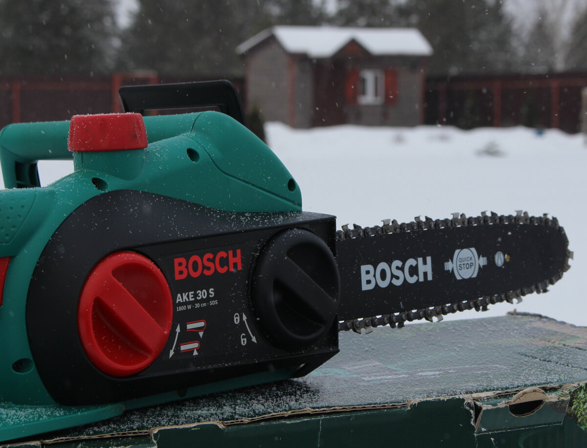 Долго мучить себя выбором я не стал, прочесав интернет и кучу отзывов заказал инструмент проверенного годами немецкого бренда BOSCH модели AKE 30 S, мощностью 1800вт. Поставляется с шиной длиной 30см. Из за не которых особенностей перед конкурентами взял именно её: