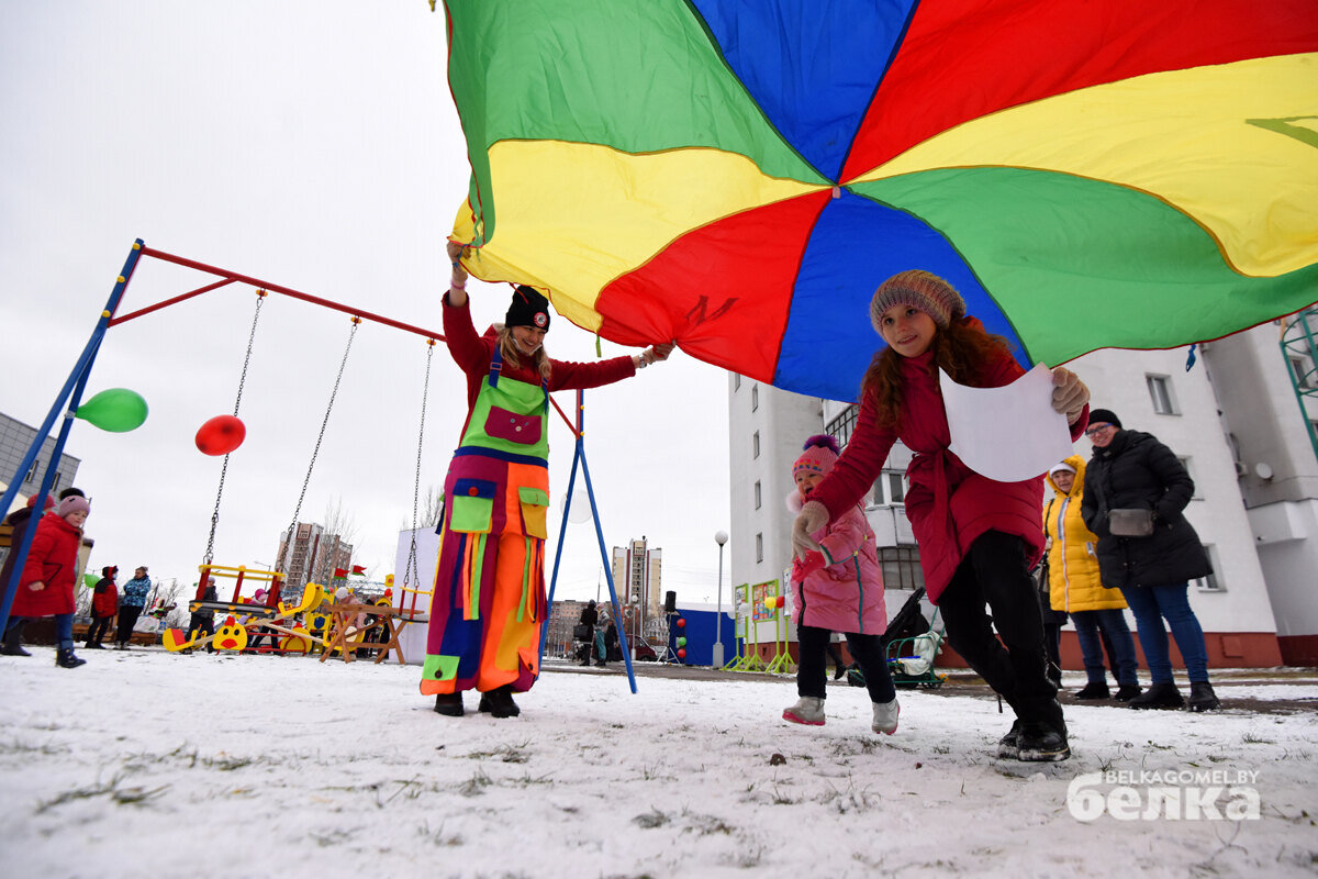 К открытию дворовой площадки прямо у дома организовали большой семейный праздник. Партнёрами выступили городской отдел по ЧС, районные организации «Белой Руси» и Красного Креста, центр творчества детей и молодёжи.