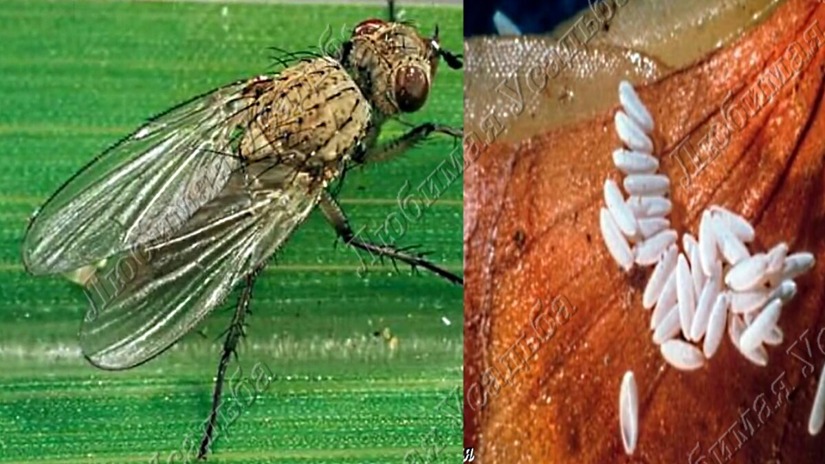 Луковая муха повреждает не только посадки лука. Не менее тяжелый урон она наносит и чесноку. Насекомое светло-серого цвета, длиной 6-7 мм и напоминает обычную муху.