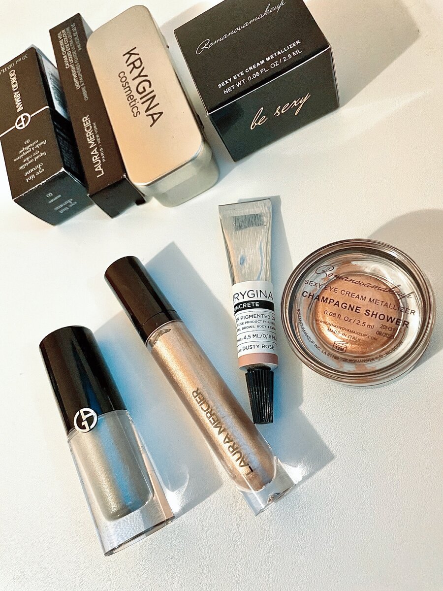 Долгое время я считала, что это самое сложное бьюти-средство на свете. Для того, чтобы у меня появились хоть какие- то жидкие тени в личной косметичке, а не только в рабочем кейсе, мне пришлось потратить почти 2 года и попробовать данный продукт у 16-ти брендов. Результат в целом неплохой, ведь целых 4 из них я забрала себе! Те, что выбраны не были имели следующие проблемы: Кто же меня все-таки впечатлил? Самое главное достоинство многих кремовых теней- стойкость. А ещё они - классная подложка под сухие тени. Но в таком амплуа я их использую только во время профессионального сложного макияжа. Для себя я предпочитаю вариант: чем проще тем лучше. Жидкие тени Eye tint chrome Giorgio Armani. Их безумно легко наносить (одним движением апликатора) по веку, и растушёвываю пальцем по всему веку. Пластичная текстура, умеренная яркость. Глаза мгновенно преображаются. Носятся весь день, могут слегка скататься на жирном веке, но не опечатываются. Идеально на каждый день как самостоятельное средст