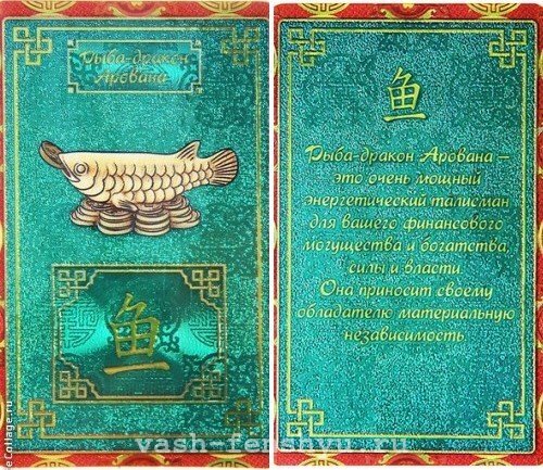По Фен-Шую, рыбки могут быть прекрасным талисманом любви. Чаще всего, используется изображение или фигурки двух рыбок: