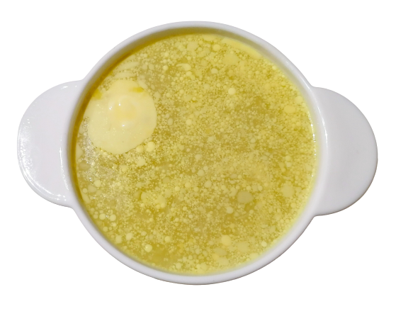 Затируха готова, подавайте на стол в горячем виде. Раскладывайте по тарелкам, и добавьте сливочное масло.