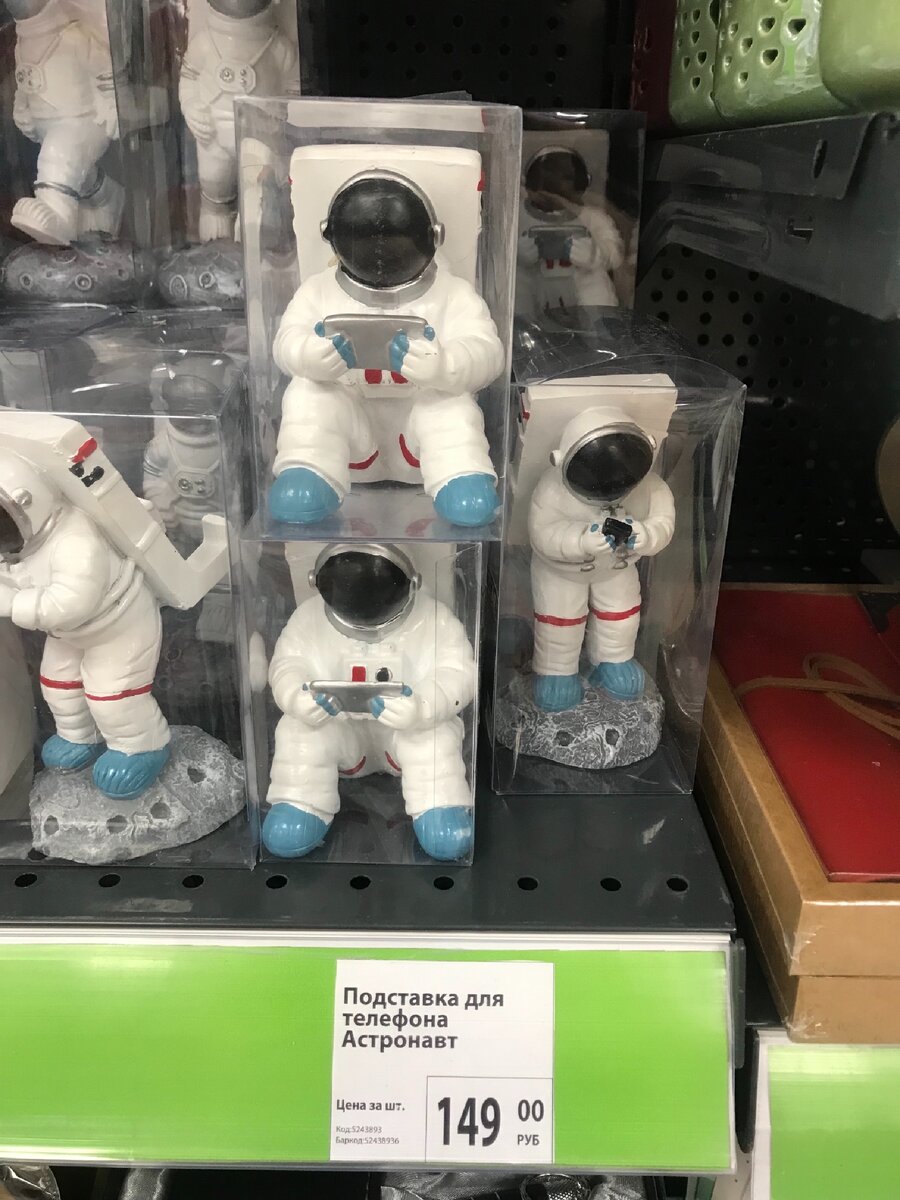 Первое, что привлекло моё внимание это подставка для телефона «Астронавт». Креативное и интересное решение. Разные фигурки астронавта на выбор. Цена 149 рублей.