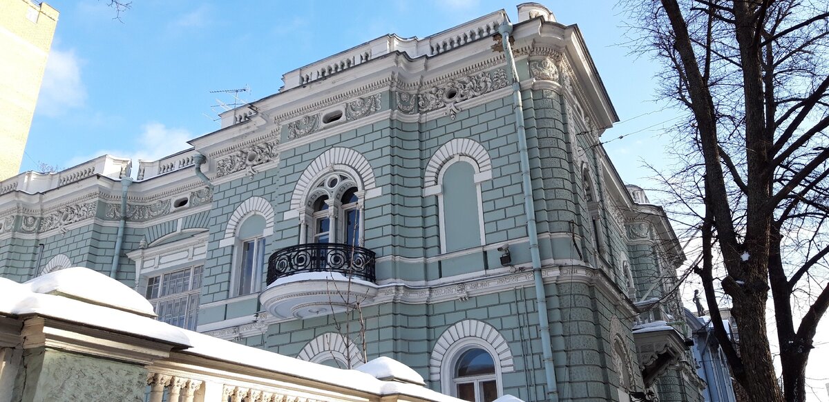 На Поварской, 46 стоит красивое светло-бирюзовое здание, построенное в стиле ренессанс - городская усадьба купца первой гильдии, главы конторы по продаже мануфактурного товара Якова Максимовича Шлосберга, построенная в начале XX века.