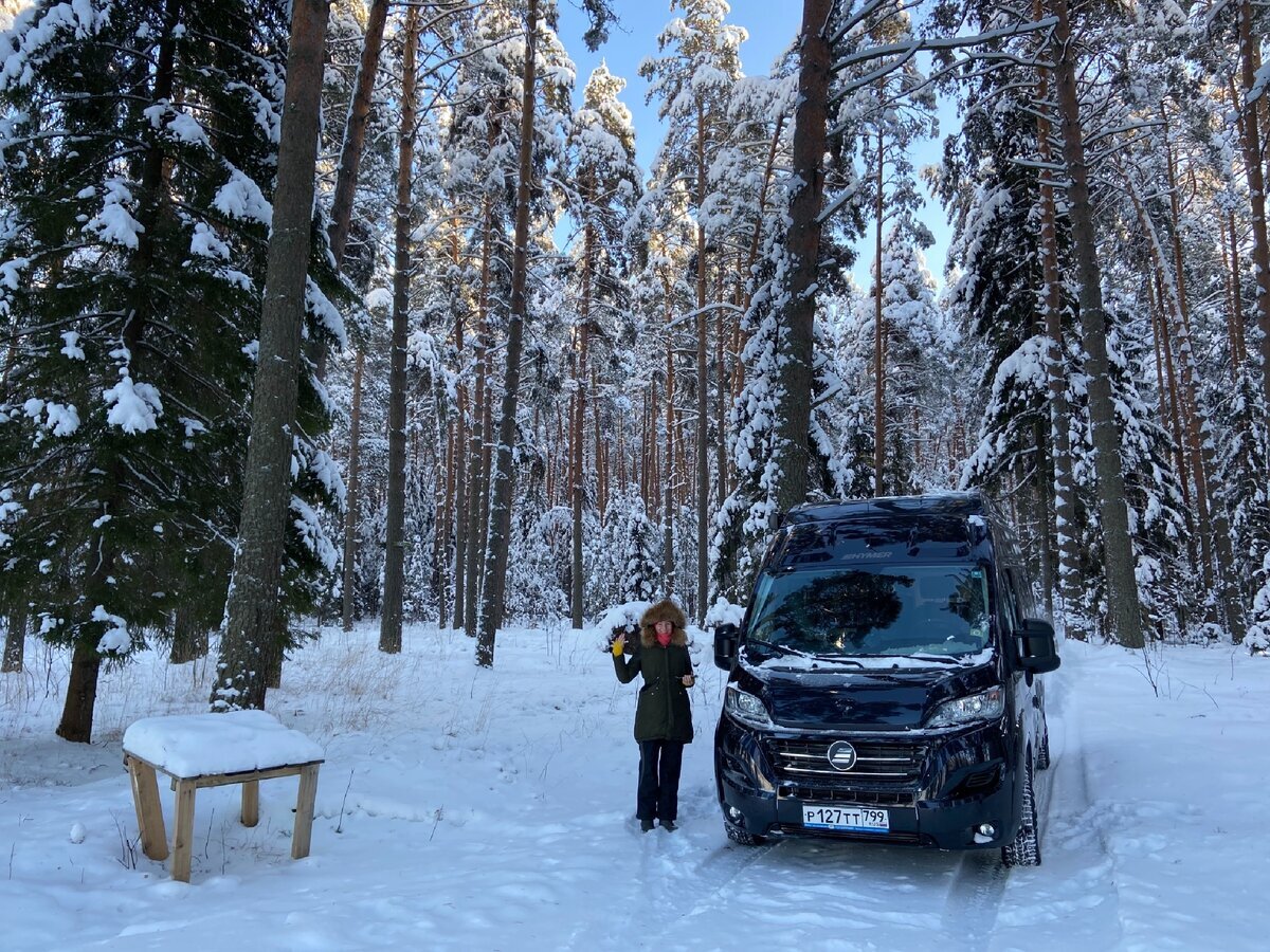 Сосновый лес, кристально чистый снег. Пробитая местными рыбаками колея вывела нас на берег Волги. Увязнуть тут проще простого. В попытке развернуться стали буксовать. Пробую в раскачку. Вперед - назад... Забраться на небольшой пригорок не получается. Вспомнил про кнопку Tracktion+ на панели приборов .