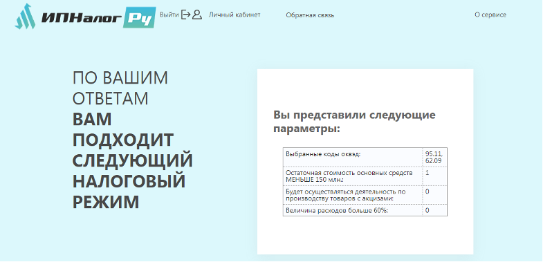 Так например, на Сервисе можно моментально получить ответ по приемлемому режиму налогообложения для вас (после прохождения небольшого опроса), подробнее написано здесь https://zen.yandex.ru/media/id/5feefae1070f3b3f4962540d/kak-vybrat-rejim-nalogooblojeniia-5ff2ffc9bb14d54ffb970cba