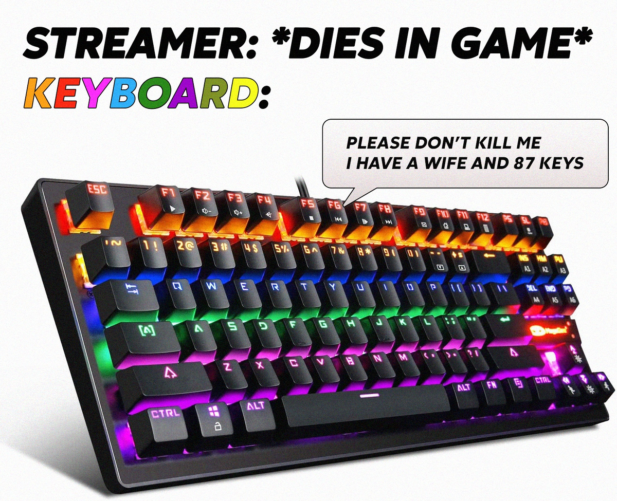 клавиатура: пожалуйста, не убивай, у меня жена и 87 клавиш