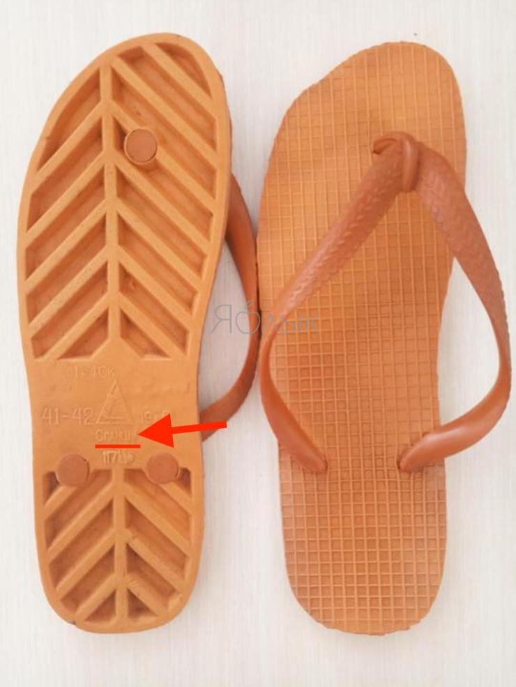 Многие покупатели думали, что выдавленное на подошвах слово "сланцы" - это и есть название обуви, а не место