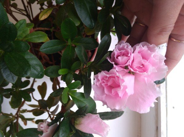 Больше всего азалия страдает от сухости воздуха и жарких батарей, надо постараться создать ей комфортные условия.