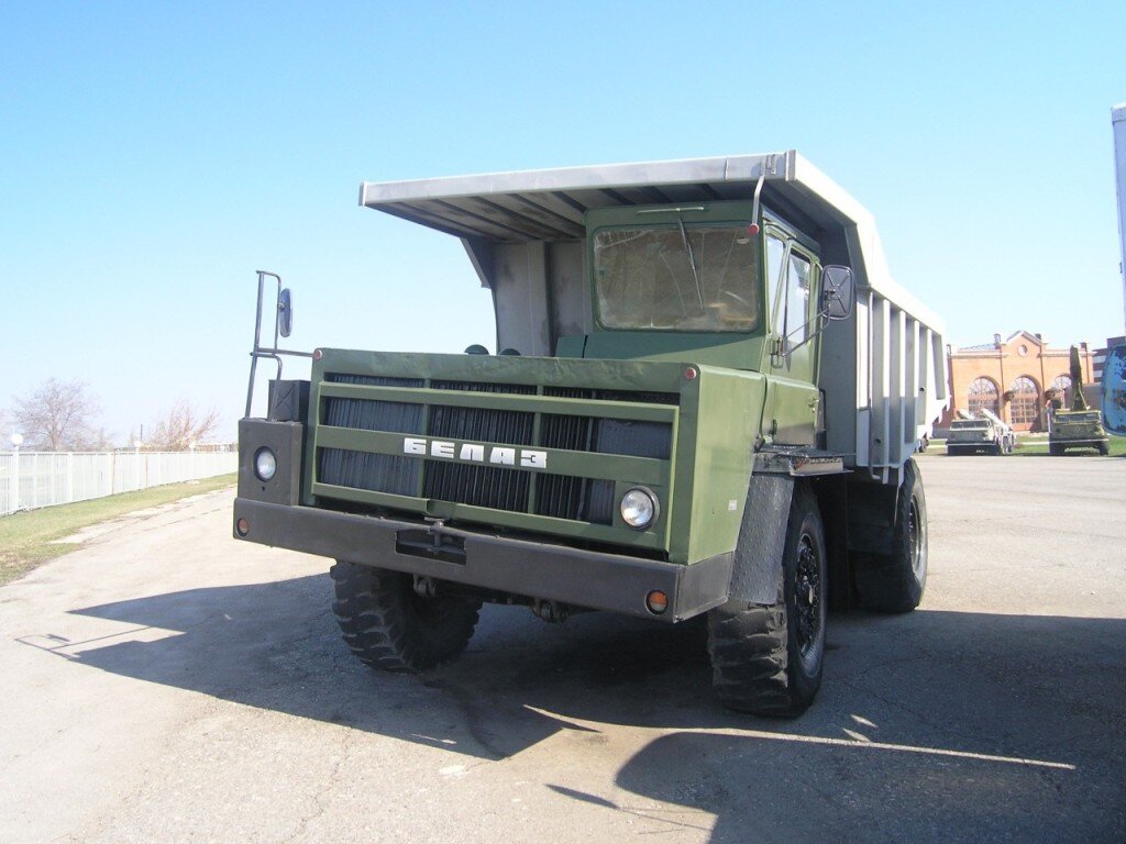 История Белорусского автомобильного завода (БелАЗ) начинается в сентябре 1958 года, в поселке Жодино на окраине города Минска на базе завода мелиоративных и дорожных машин, построенного еще в 1947 г. Его специализацией стали тяжелые карьерные самосвалы с цельнометаллическим кузовом и задней разгрузкой. Пионером производства карьерных самосвалов в СССР был Минский автозавод (МАЗ), где в 1950 г. под руководством главного конструктора Б.Л. Шапошника был создан первый отечественный 25-ти тонный самосвал МАЗ-525, а в 1957 г. – 3-х осный вариант МАЗ-530 (6×4) грузоподъемностью 40 т. МАЗ-525 стал первой машиной, которая была собрана на Белорусском автозаводе 6 ноября 1958 г.