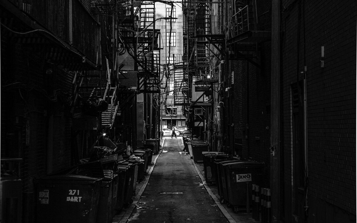 По переулку проходил мальчик, весь в ободранных штанах и с синяком под глазом. Он шёл по тёмному переулку и увидел как спереди идёт взрослый высокий мужчина с широкими плечами. Ободранец подошёл к нему и спросил: