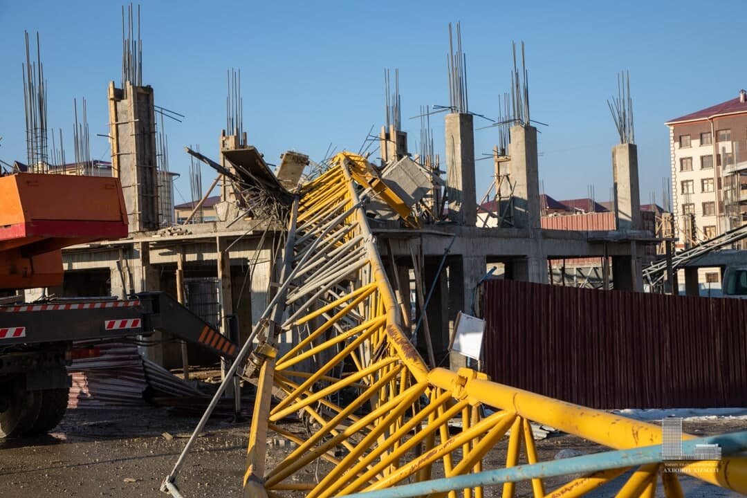 В Навои на стройплощадке многоэтажки рухнул башенный кран. Фотолента