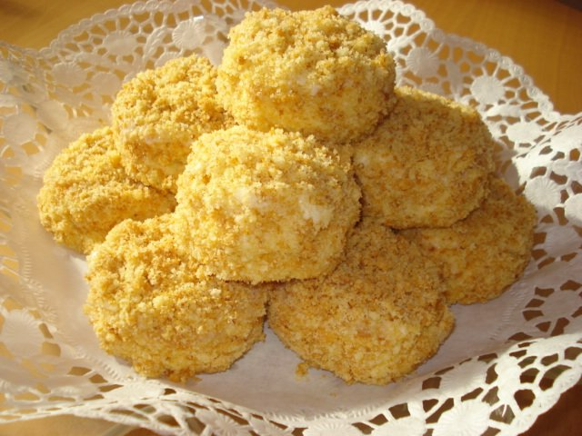 13. Из остатков бисквита сделать крошку, можно в измельчителе.