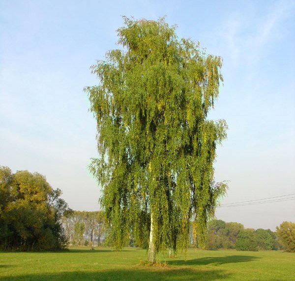 Береза повислая — дерево высотой до 20 м со свисающими ветвями. У молодых деревьев кора ствола белая, а у старых — серая. Молодые ветви красно-бурые, усажены смолистыми бородавочками. Листья очередные, треугольно-яйцевидные, по краям двоякоострозубчатые, длиной 3,5—5 см, черешки в 2—3 раза короче пластинки листа. Цветки раздельнополые, собраны в соцветие — сережку. Тычиночные цветки развиваются с осени и образуют повислые сережки длиной 5—6 см, располагаясь по 2—3 на концах ветвей; пестичные развиваются весной одновременно с листьями и образуют более мелкие сережки, сидящие поодиночке на боковых веточках; плод — продолговато-эллиптический орешек длиной 2,5 см, с двумя перепончатыми крылышками, которые в 2—3 раза шире плода. Цветет в мае. Растет в лесах, на склонах гор почти во всех областях России.