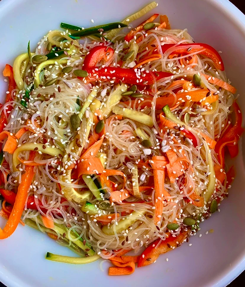И в 2-3 минуты до готовности добавляем заранее замоченную в кипятке фунчозу.