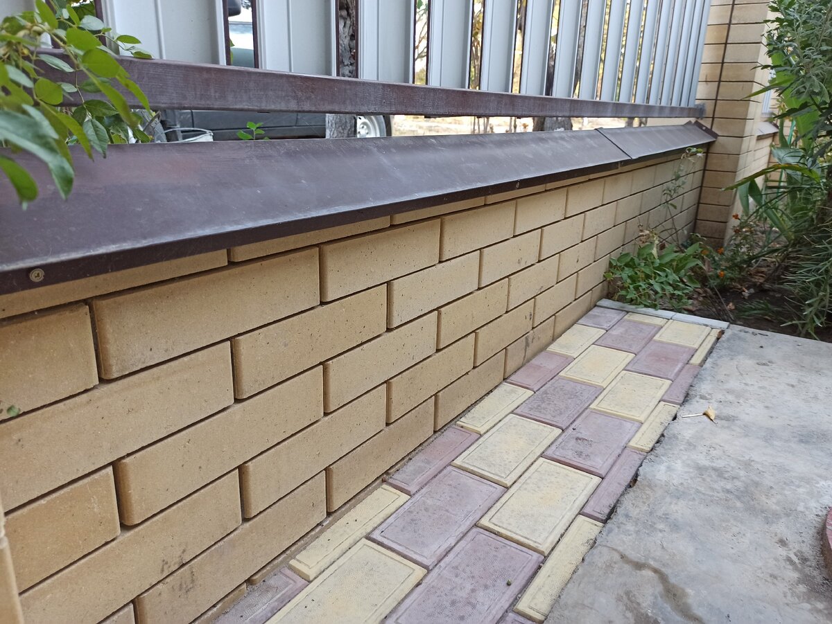 Дом у него старый, поэтому стены пришлось облицовывать кирпичом, из которого он сделал и забор. Дом показывать не буду, а покажу сам забор, так как понравился
