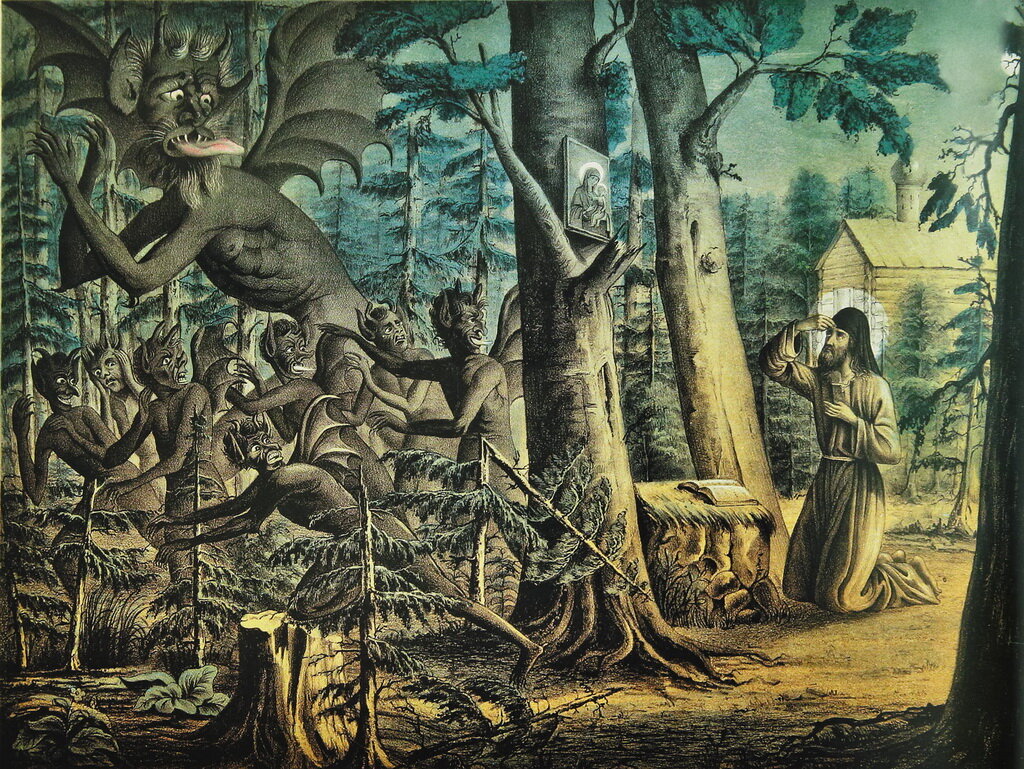 …Дьявол долго бродил по лесу, оглядываясь на хижину послушника. Прежде тёмная, сейчас она светилась огнем. То был жар молитвы, и даже отсюда, издалека, он жёг демона нестерпимым пламенем. Он злился, сверкал зубами, но подойти ближе уже не мог.