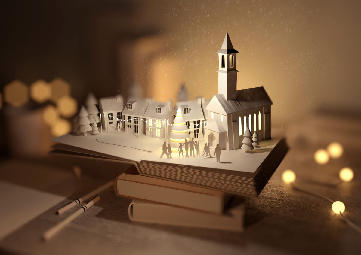 Главное отличие поп-ап книг от обычных — это иллюстрации с объёмными бумажными элементами, которые могут двигаться при перелистывании страниц. Когда листаешь такую книгу, её изображения оживают, предстают перед взором читателей в.